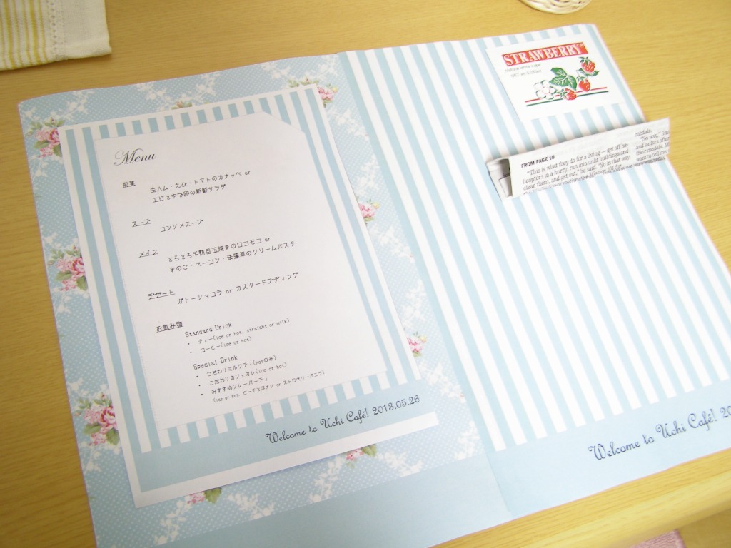 メニュー表、ランチョンマットなどは手作りです。